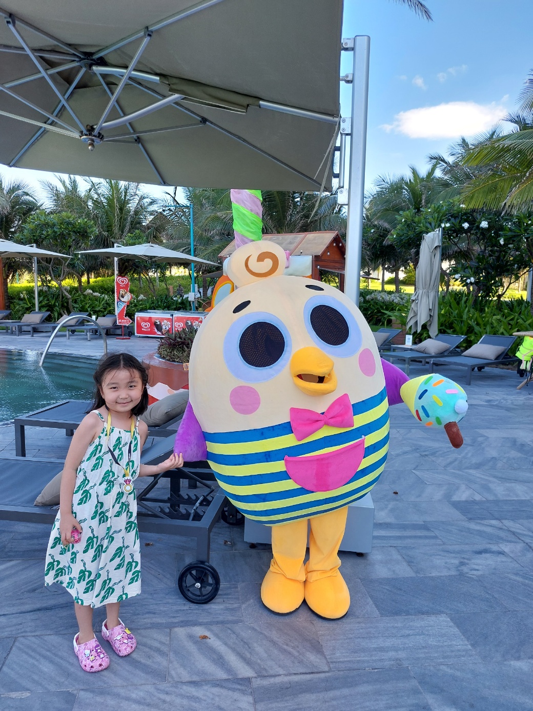 조식 먹다보면 이렇게 인형탈도 돌아다니며 아이들과 인사해준다. 나트랑 모벤픽 리조트를 선택한 이유 중 가장 큰 것이 바로 키즈프렌들리한 리조트라는 점이었는데 별 것 아니지만 아이들이 참 좋아한다. 요 인형탈들은 오후 3시부터 이용 가능한 초콜릿 아워 때도 한 번 더 등장한다.