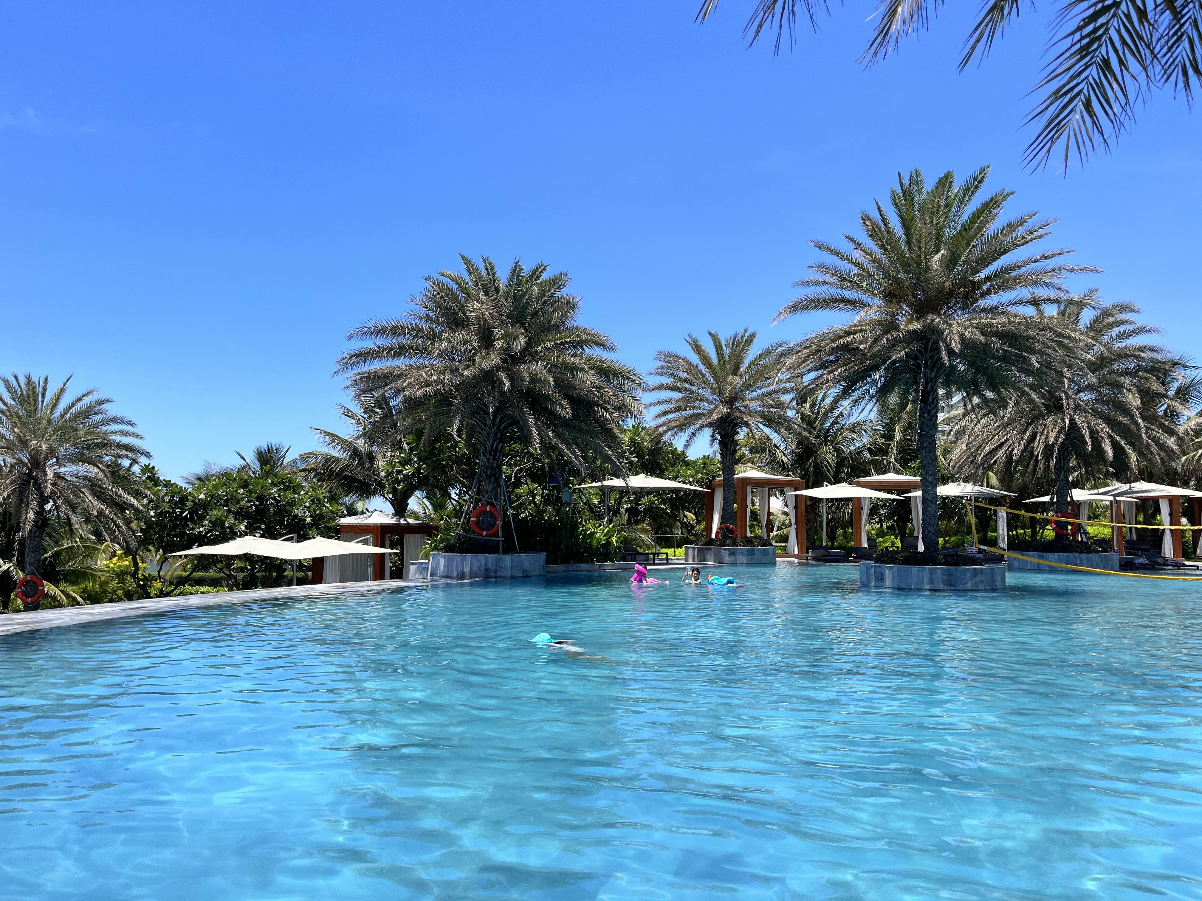 메인풀 바로 아래 반층을 계단으로 내려오면 조금 작은 풀이 나오는데 여긴 더 한가하다. 마치 전세 낸 듯이 쓸 수 있었다.