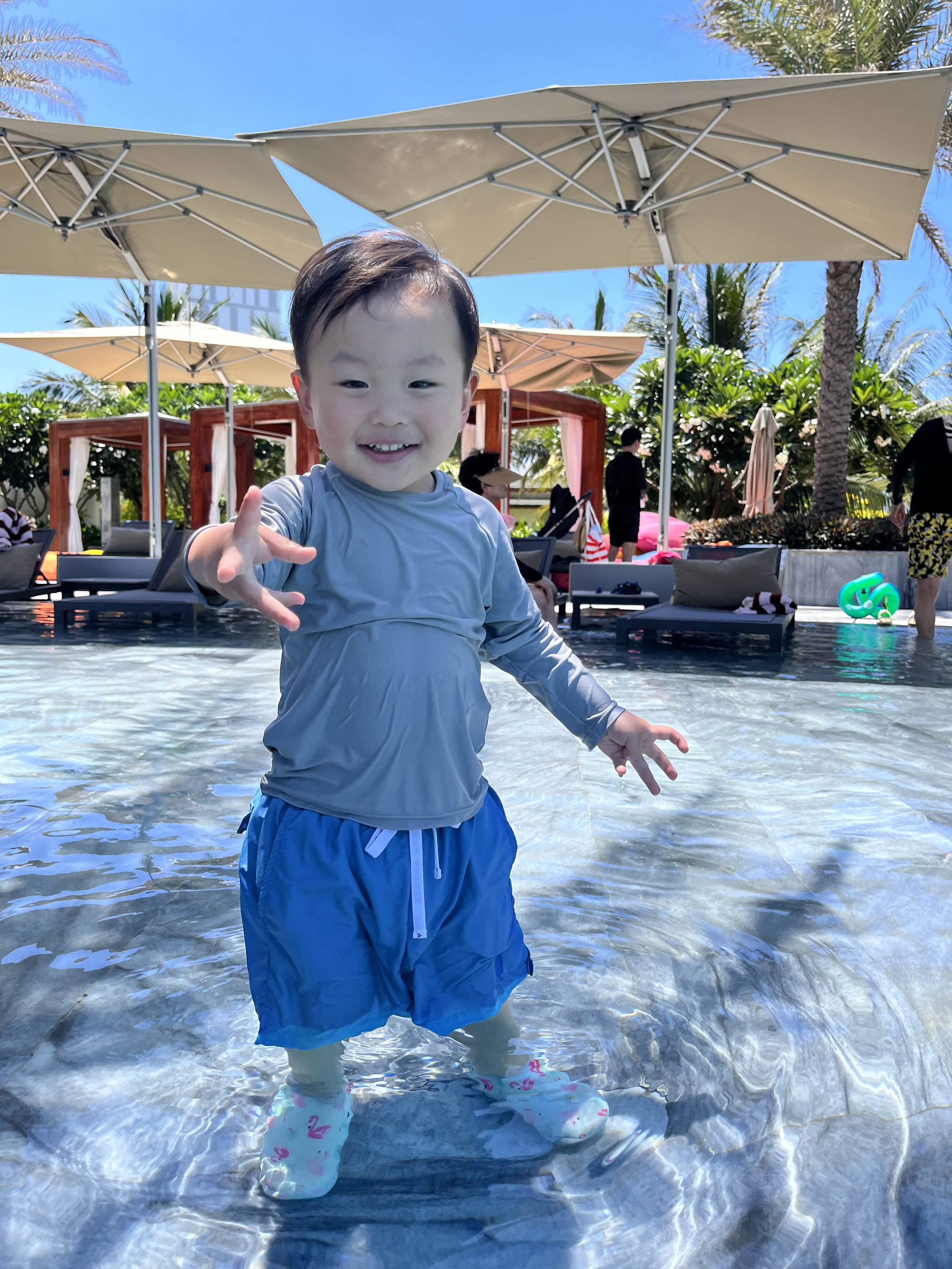조식 먹고 옷 갈아입고 본격 수영을 즐기러 나왔다. 제일 처음 간 곳은 키즈풀이었는데 우리가 갔을 땐 사람이 하나도 없었다. 조금 놀다보니 왜 사람이 없는 지 알 것 같았다. 수심이 얕아 아주 어린 아이들이 놀기엔 괜찮을 것 같은데 뭣보다 슬라이드가 너무 안내려간다.