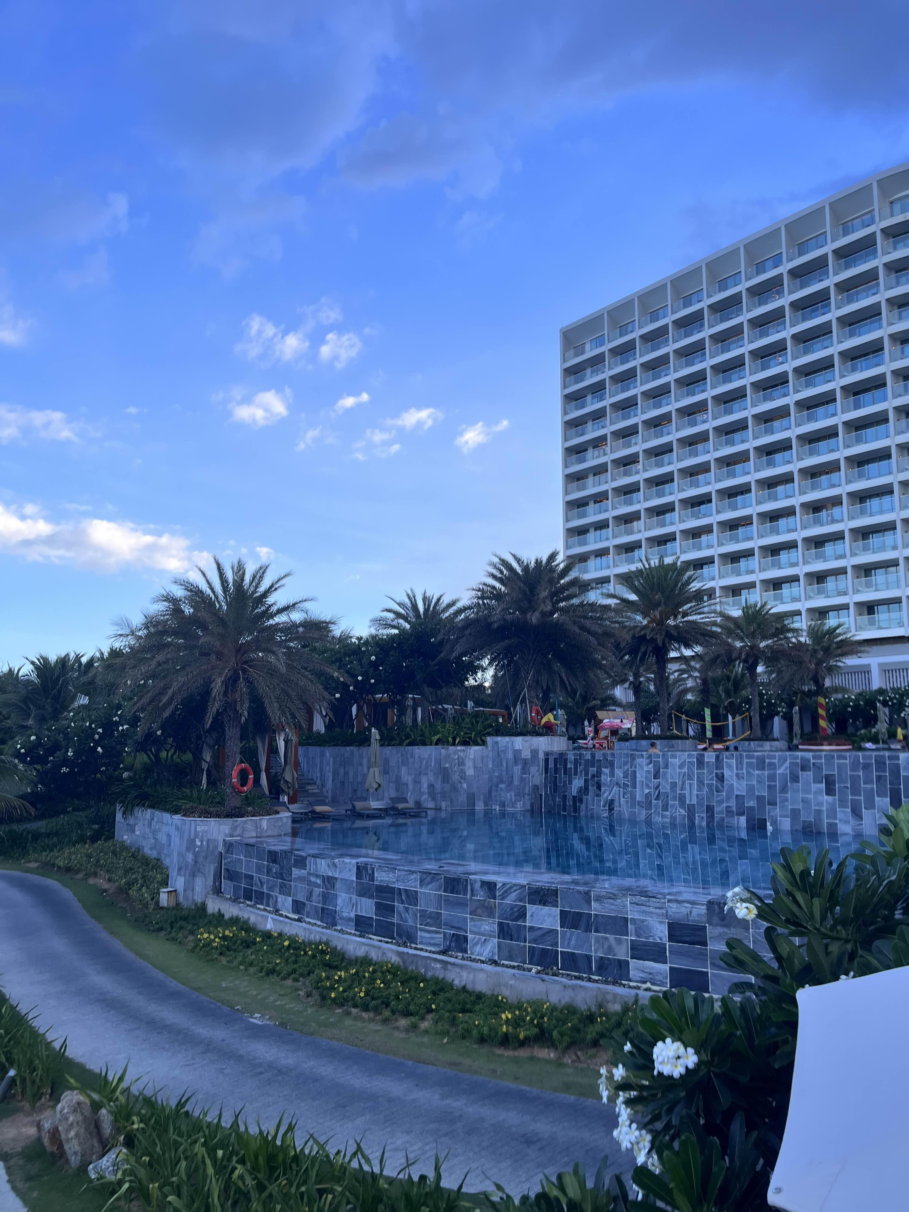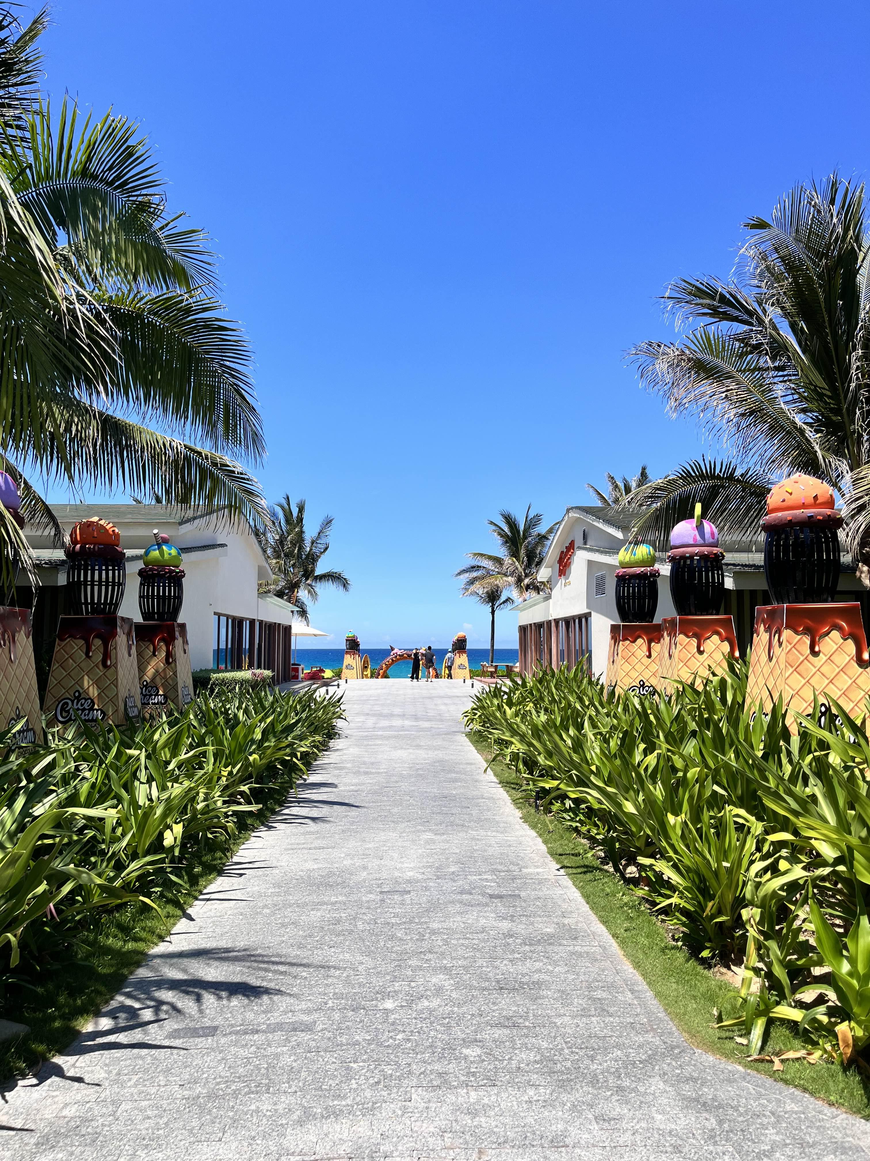 나트랑 모벤픽 리조트 내 레스토랑 트로피카나에서 비치로 이어지는 길목의 풍경이 그림같이 아름다웠다. 날씨만 좀 선선해도 야외에서 바다보며 식사하면 좋을 것 같은데 우리가 방문한 5월은 체감온도가 40도에 육박했기에 상상도 할 수 없었다.